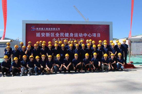6月30日,延安新區全民健身運動中心項目順利封頂。延安大劇院運營管理有限公司副董事長崔凱,第二工程公司經理張楊及項目部全體參建人員參加封頂儀式。