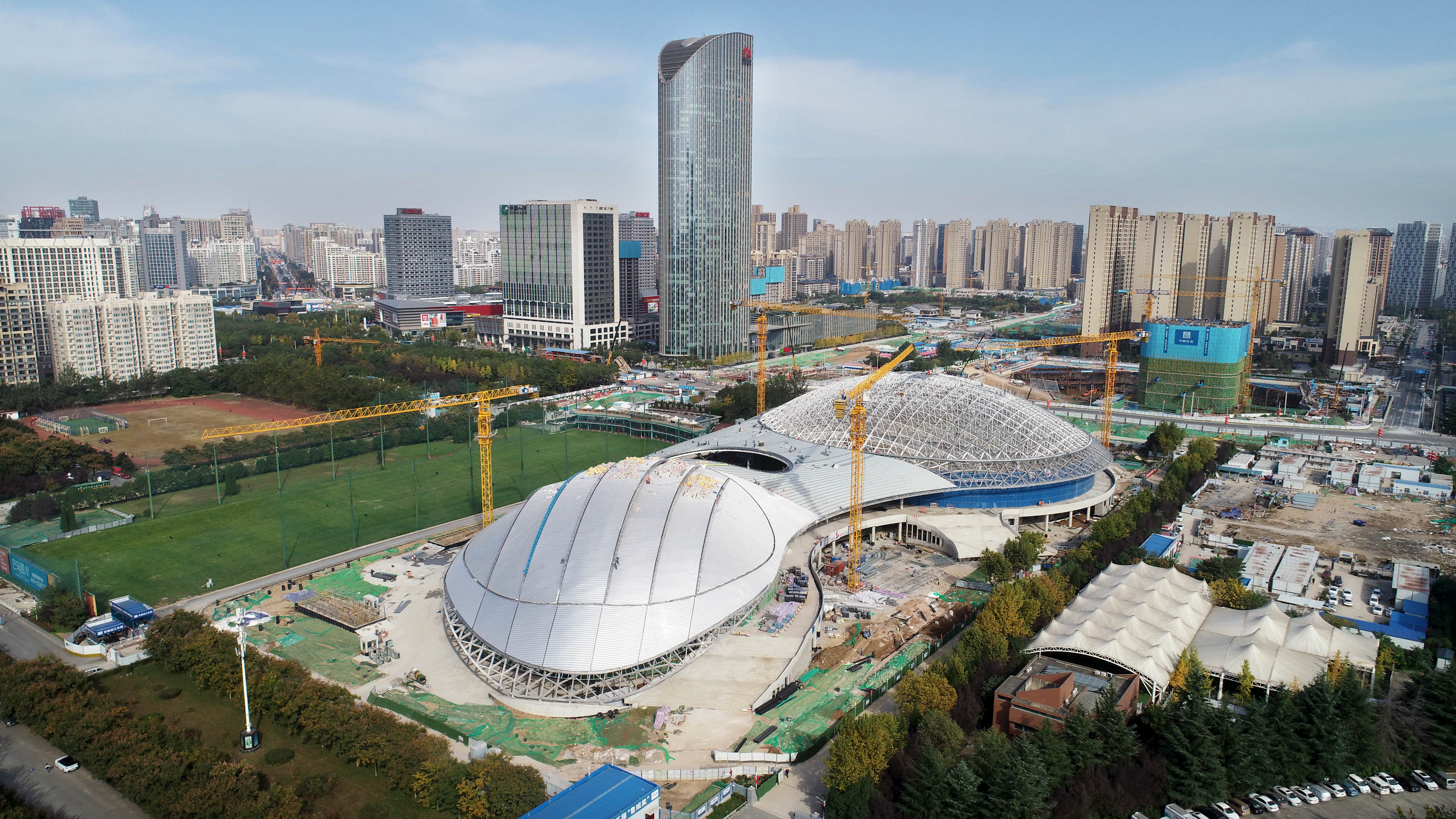 陜西奧體中心體育館項(xiàng)目按甲級(jí)體育館標(biāo)準(zhǔn)建設(shè),總建筑面積72450平方米,分為比賽館和訓(xùn)練館兩部分,可滿足舉辦全國綜合性和單項(xiàng)國際比賽的賽事要求。陜建三建集團(tuán)自2018年6月進(jìn)場施工以來,全體建設(shè)者搶抓工期,攻堅(jiān)克難,僅用20天完成了30萬方土方的挖方工程量,30天完成了4390根樁基的工程量,6個(gè)月完成了主體施工,今年9月27日鋼結(jié)構(gòu)工程順利合攏,在西安市高新區(qū)創(chuàng)造了新的“陜建速度”。