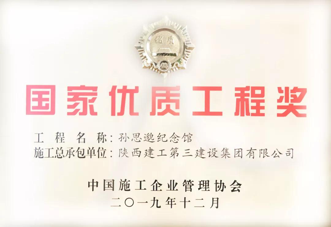 12月8日,2019年國家優質工程獎總結表彰大會在北京國家會議中心召開,由集團公司承建的孫思邈紀念館工程榮獲2018-2019年度國家優質工程獎,這是繼集團公司延安棗園文化廣場一期一標段工程榮獲2017年國優獎后,獲得的第10項國家優質工程獎。