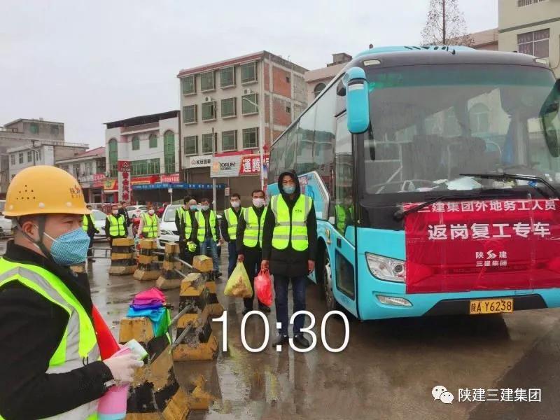 2月26日,三建集團二公司、三公司、工程管理部等單位安排專車赴四川省萬源市、商洛市洛南縣、安康市漢濱區(qū)等地市護送75名返崗務(wù)工人員陸續(xù)回到省市重點建設(shè)項目,保障務(wù)工人員安全、放心的回到施工一線,助力集團公司快速平穩(wěn)實現(xiàn)復(fù)工生產(chǎn)。
