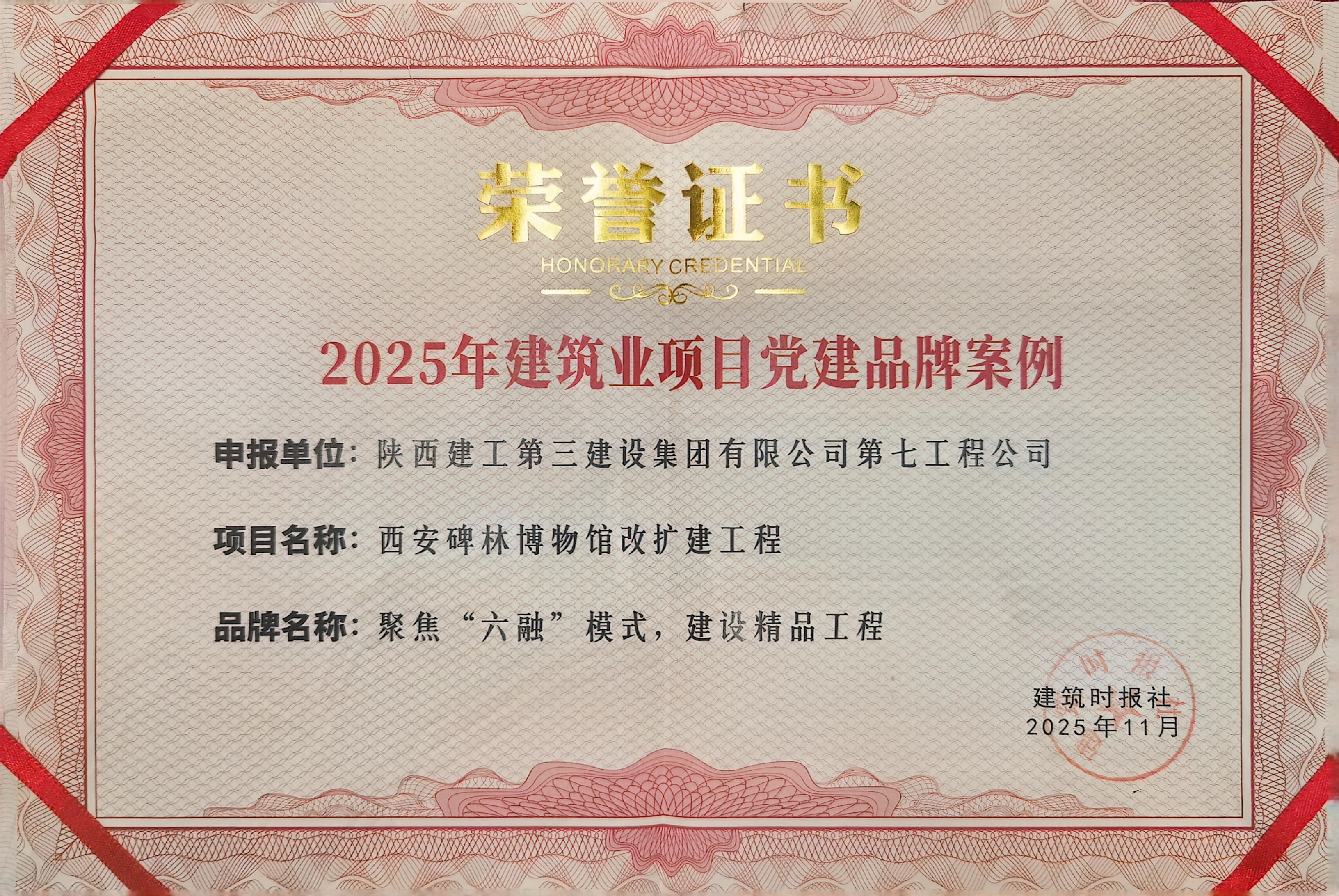 近日,建筑時(shí)報(bào)社正式印發(fā)《關(guān)于發(fā)布2025年建筑業(yè)企業(yè)文化傳播案例、建筑業(yè)項(xiàng)目黨建品牌案例、建筑業(yè)優(yōu)秀出版刊物的決定》(滬筑社辦〔2025〕10號(hào))。在本次全國(guó)范圍內(nèi)的評(píng)選中,陜建三建集團(tuán)第七工程公司以西安碑林博物館改擴(kuò)建工程為實(shí)踐載體,申報(bào)的“聚焦‘六融’模式,建設(shè)精品工程”黨建品牌案例,從千余家建筑業(yè)申報(bào)單位的案例中突圍勝出,成功入選“2025年建筑業(yè)項(xiàng)目黨建品牌案例”,這也是項(xiàng)目繼工程建設(shè)品質(zhì)獲省市級(jí)贊譽(yù)后,在黨建品牌建設(shè)領(lǐng)域收獲的國(guó)家級(jí)行業(yè)認(rèn)可。